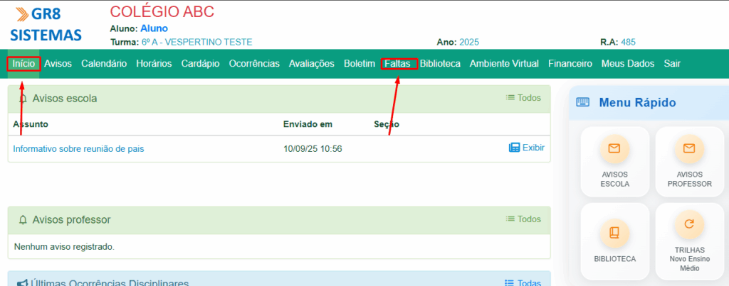 Início > Faltas.