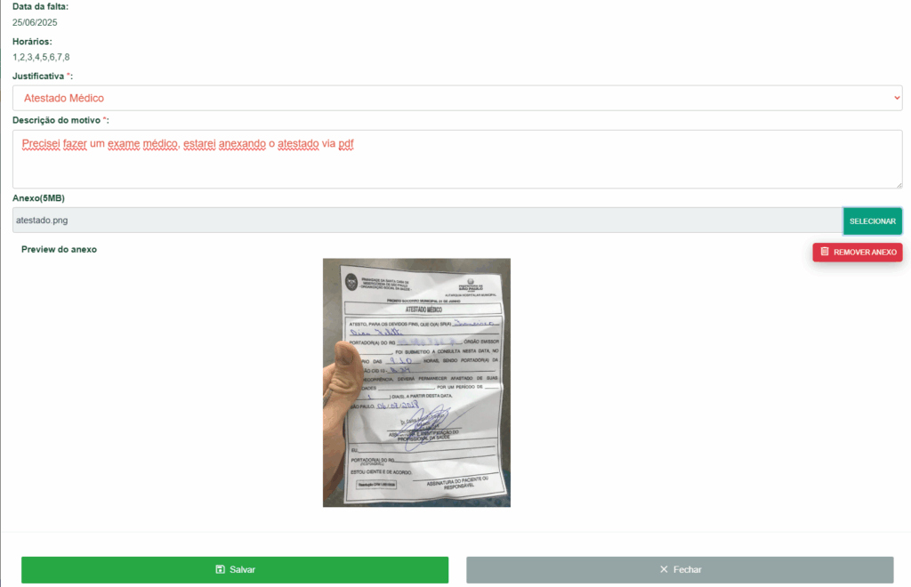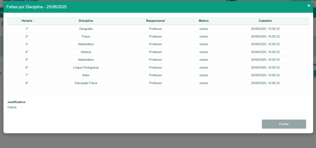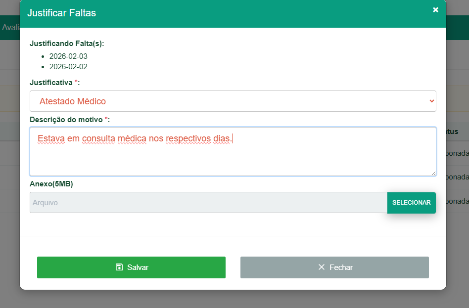 – Após cancelar uma justificativa é necessário justificar a falta novamente.