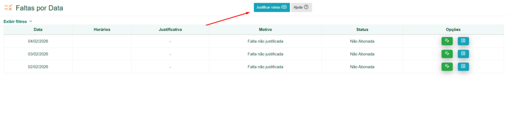 É possível que o aluno justifique faltas em massa, caso o aluno tenha mais de uma falta..